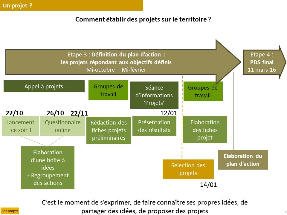 La consultation citoyenne pour définir les projets s’est déroulée de la manière suivante :