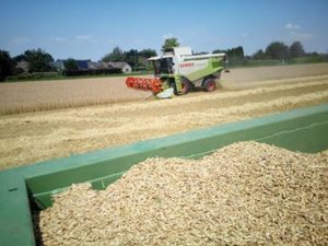 Ainsi, après avoir été semée en février 2018, cette parcelle mise en place par la Ferme Schalenbourg Filles (Haneffe) est la toute première parcelle de notre projet « Cultivons la diversité! » qui vise à recréer une filière céréalière locale et durable sur le territoire. Sous les conseils d’experts du Centre Wallon de Recherches Agronomiques de Gembloux, c’est la variété « Tybalt » qui a été choisie, notamment pour ses bonnes caractéristiques panifiables et pour ses qualités environnementales. Ces céréales ont été cultivées selon une agriculture raisonnée, c’est-à-dire en utilisant le moins d’intrants et de produits phytopharmaceutiques possibles. Une parcelle d’épeautre, cultivée dans la même optique, a également été récoltée et sera également destinée à produire de la farine.